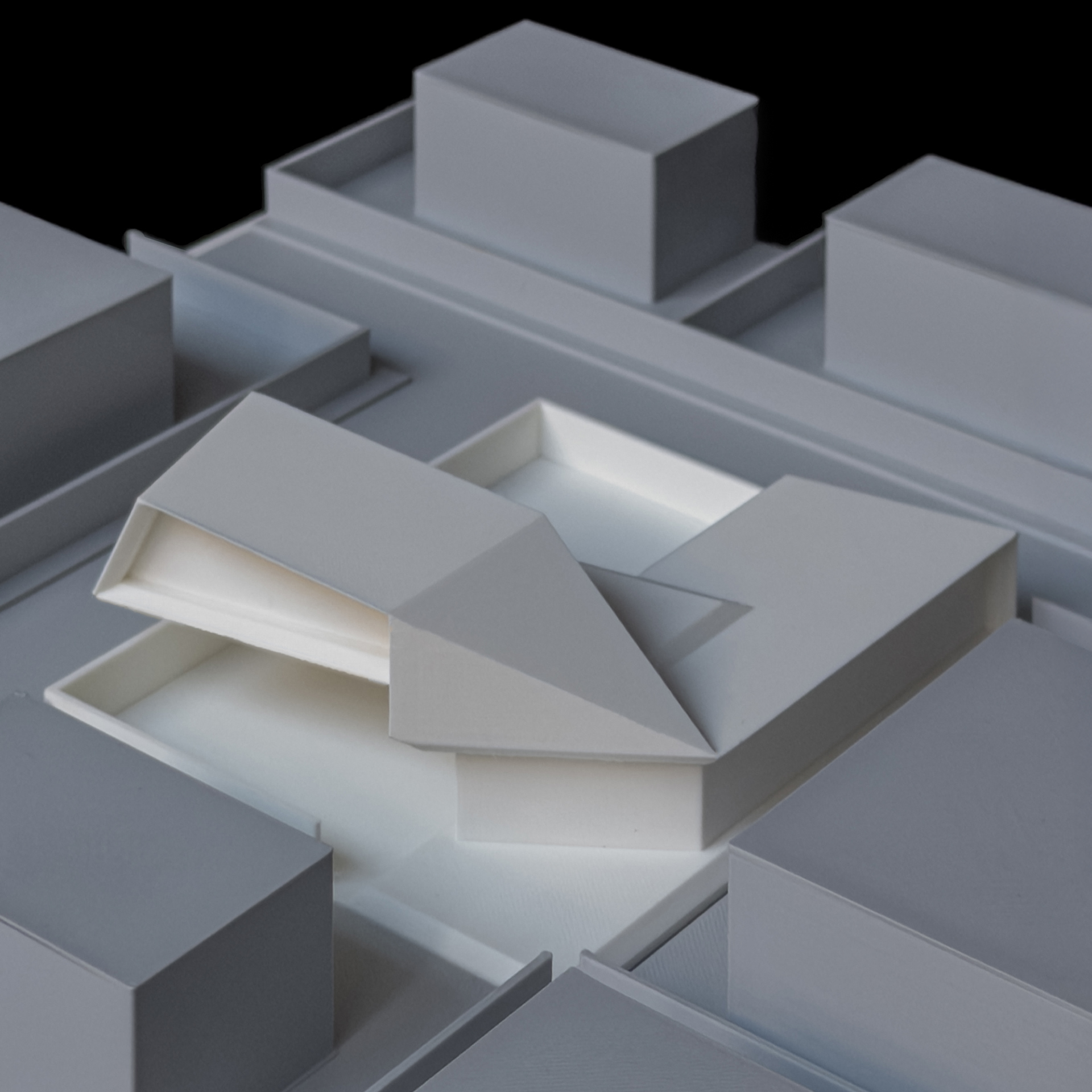 the silhouette of the building expands and folds into angular shapes, creating the unified coating for the entire space.