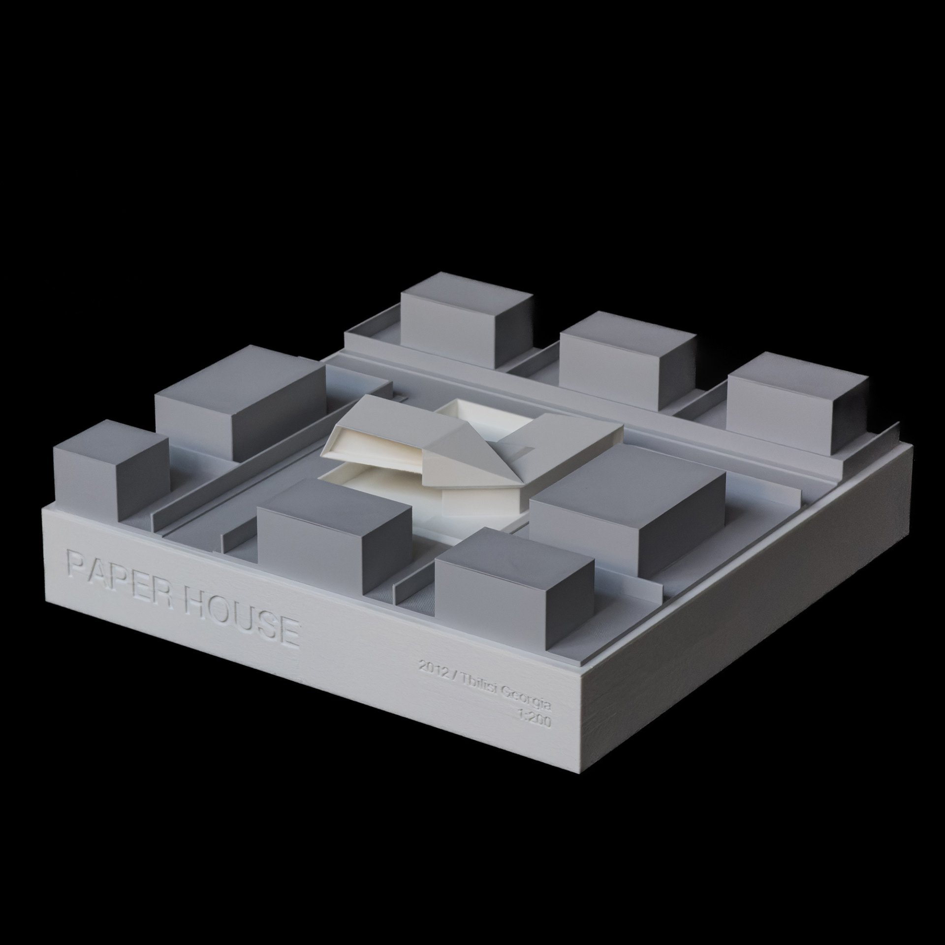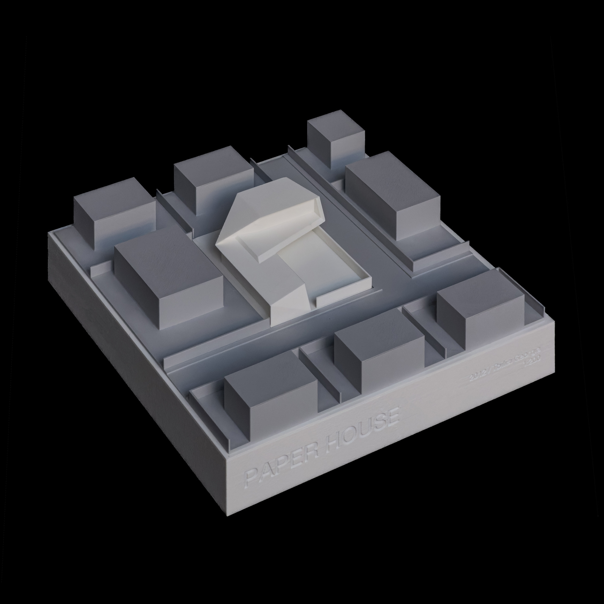 The outer layer of the second floor and the backside of the building are symmetrically sliced, bringing the aesthetic of unity into focus.