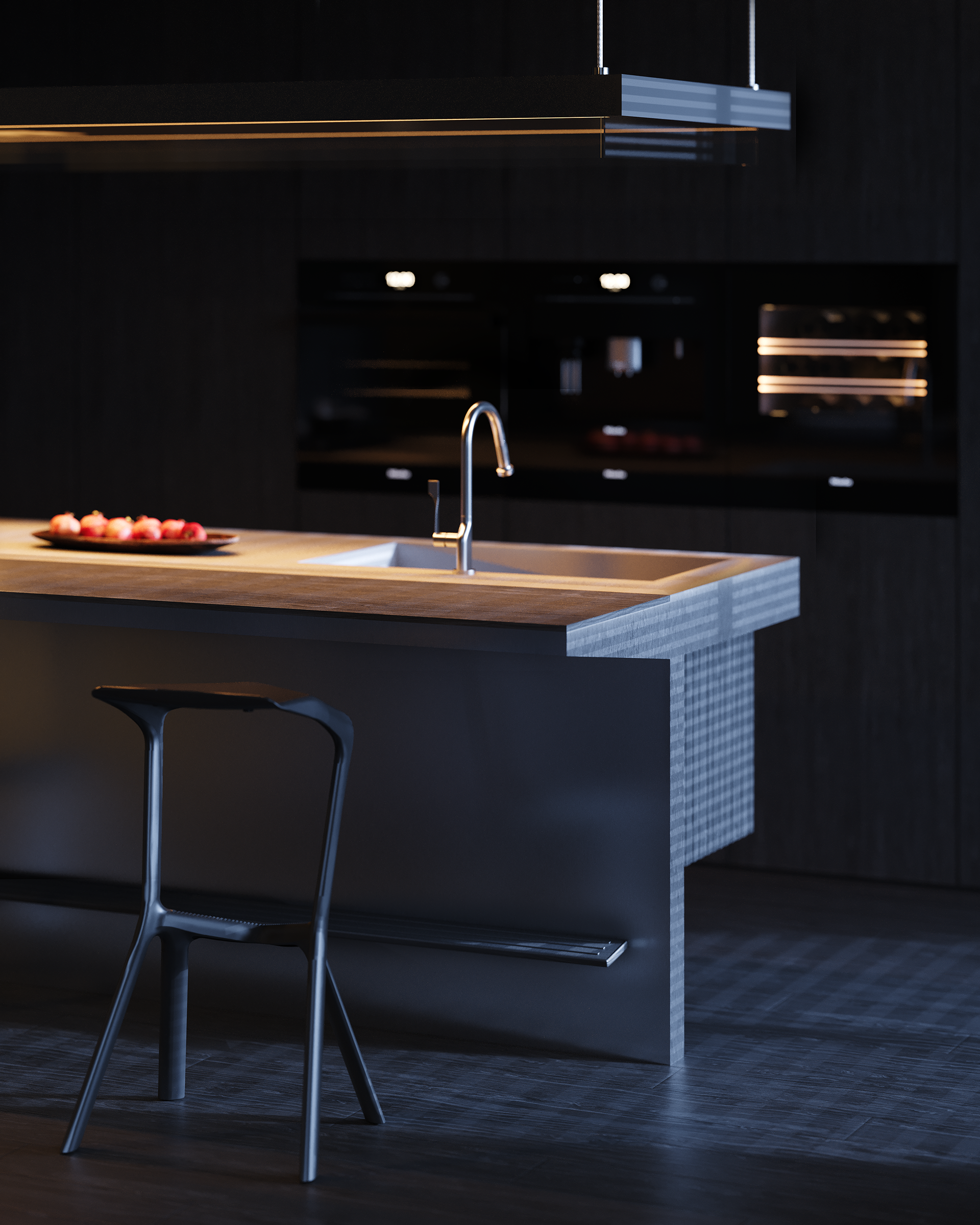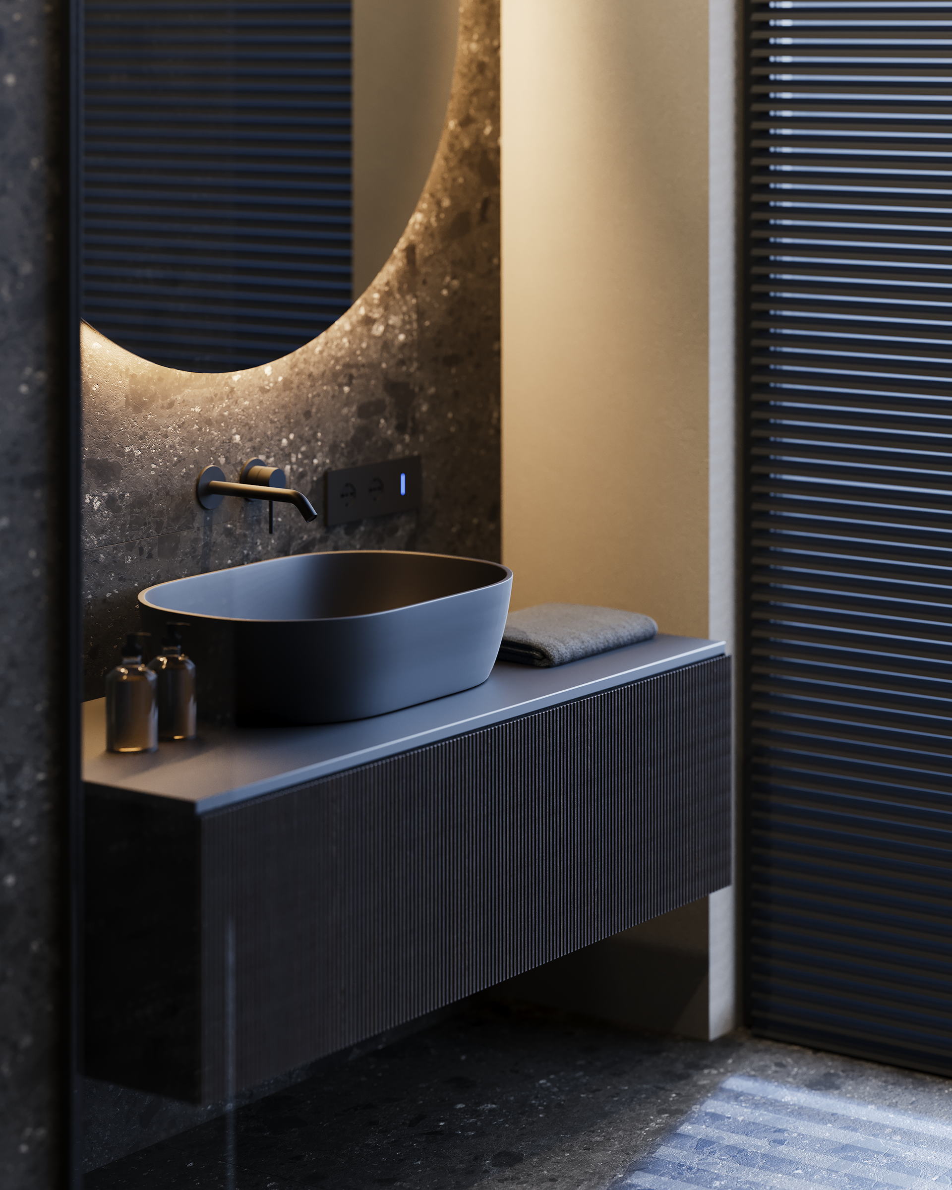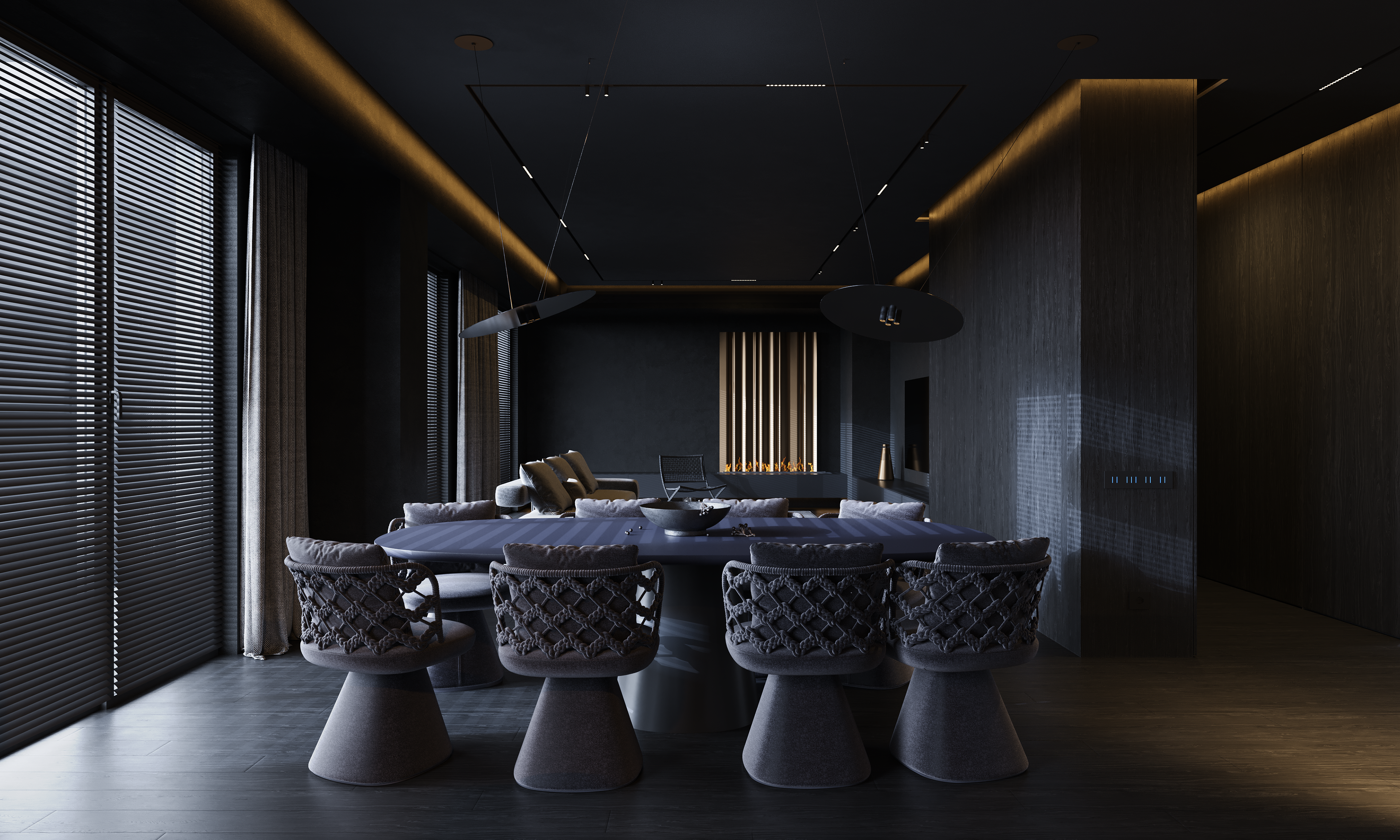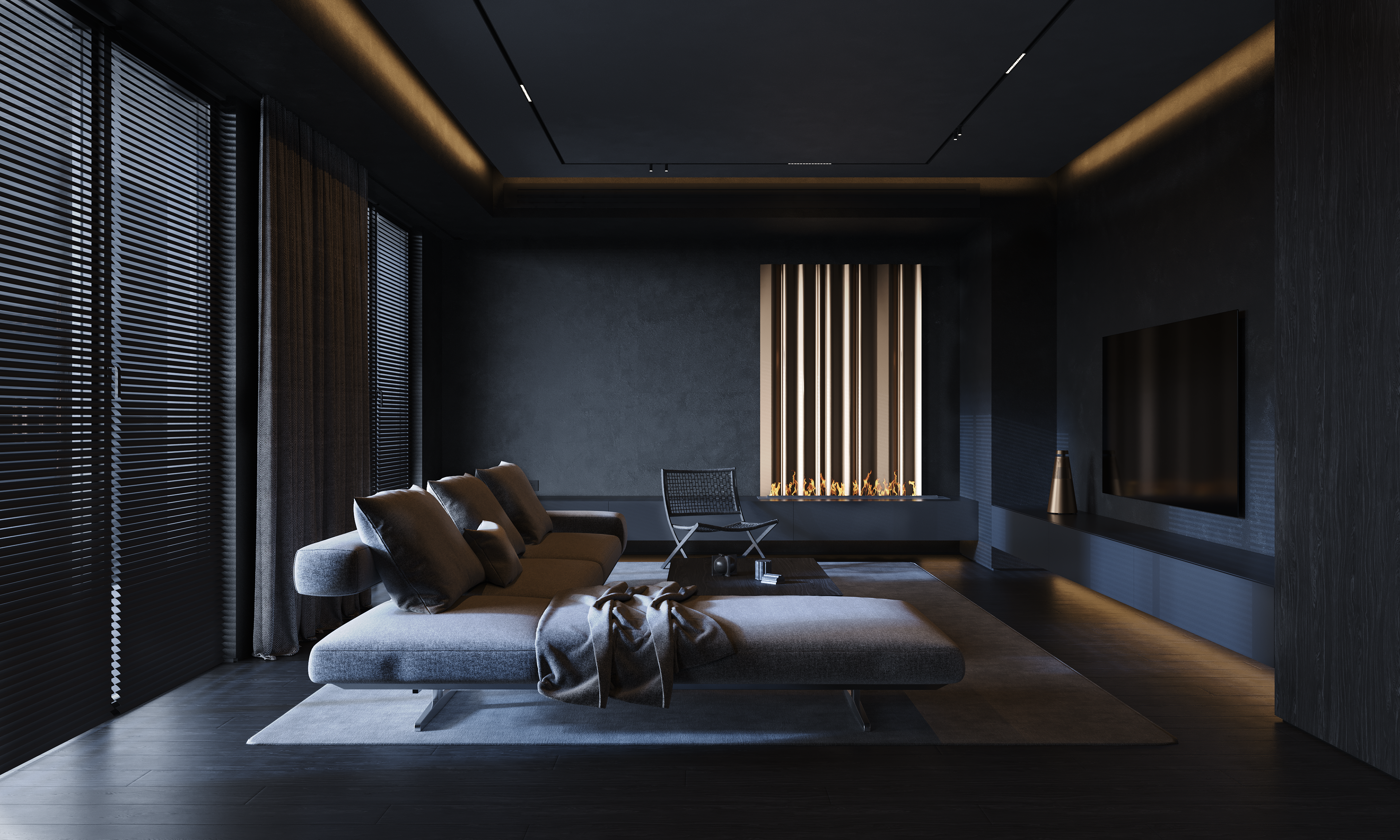 PUULSE is a two-level penthouse in Tbilisi designed for a young woman and her daughter, shaped around a quiet contrast between daytime calm and night-time intensity. The interior follows a STENSE approach: minimal geometry, limited materials, and strict control of surfaces. The space is intentionally restrained, so atmosphere is created through light rather than form.