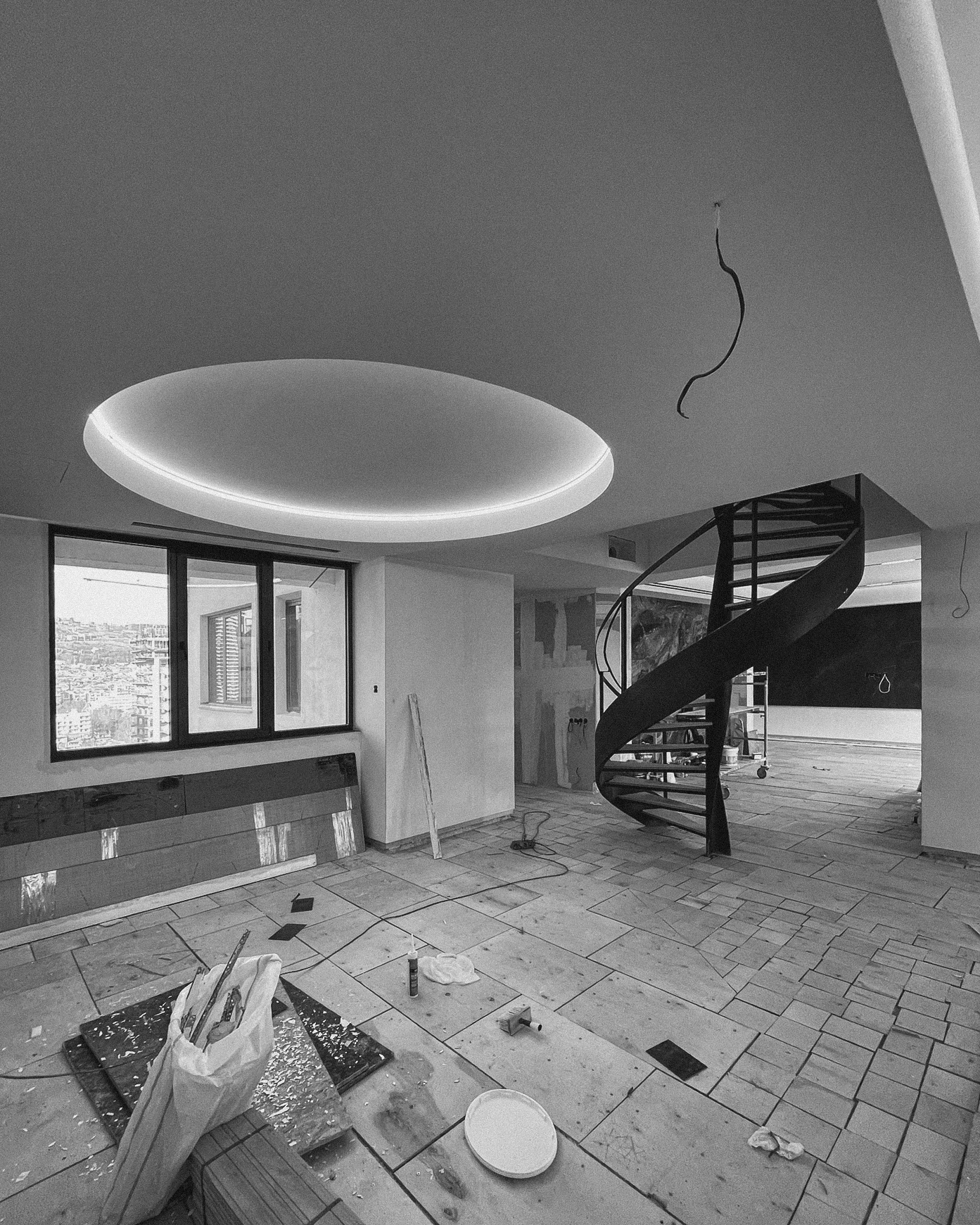 Both floors of the penthouse accommodate the verdant terraces, two of which overlook the hippodrome. The second floor is also allocated to a master bedroom and a bathroom, which also faces the hippodrome.