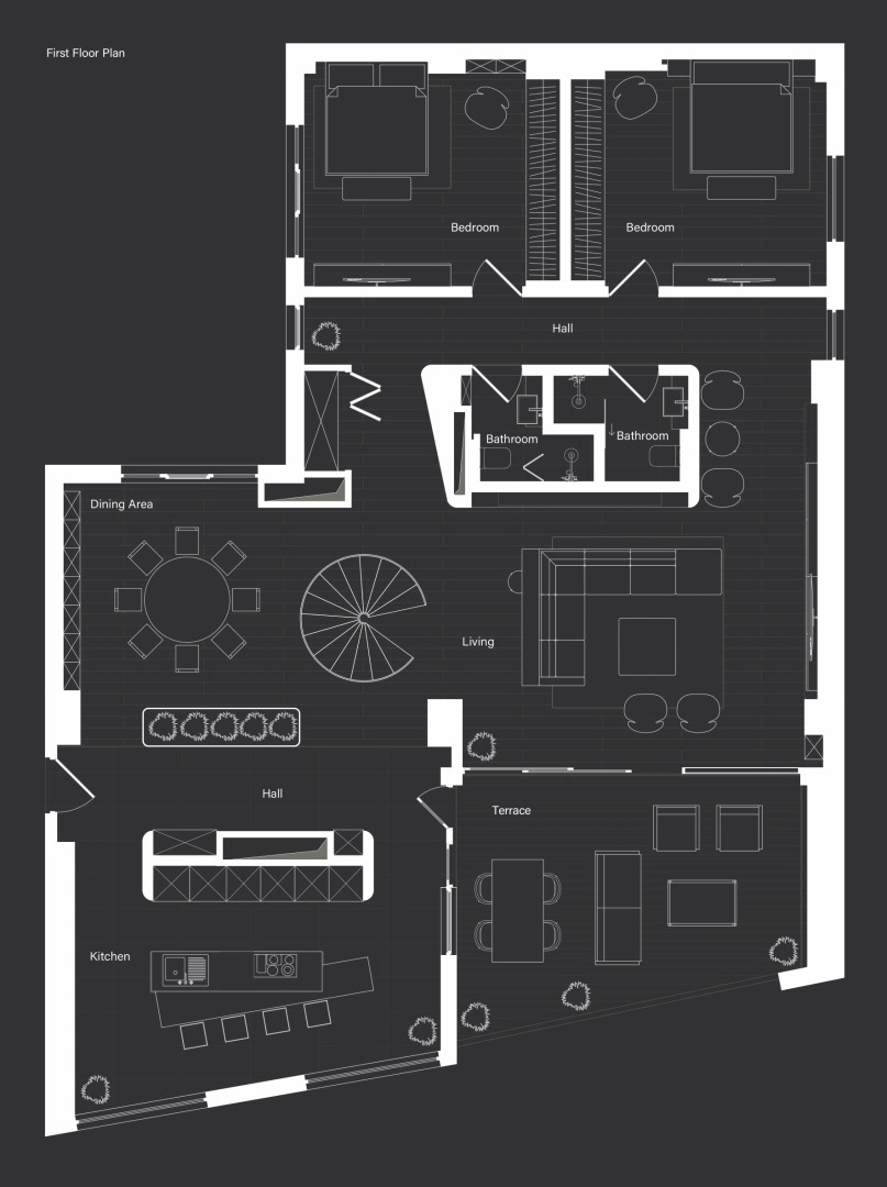 Both floors of the penthouse accommodate the verdant terraces, two of which overlook the hippodrome