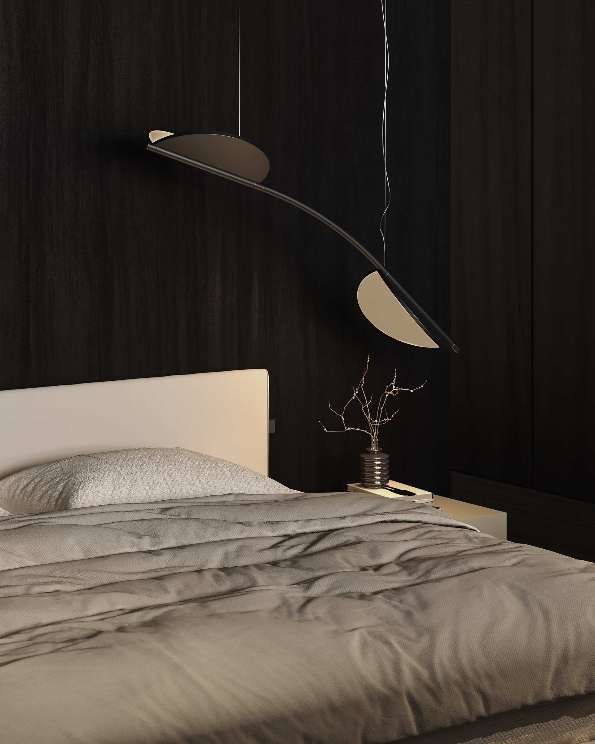 Facing the sea, the apartment opens toward the horizon, where the sunsets became the driving force behind the concept. The space was kept minimal and quiet to let that view take over.